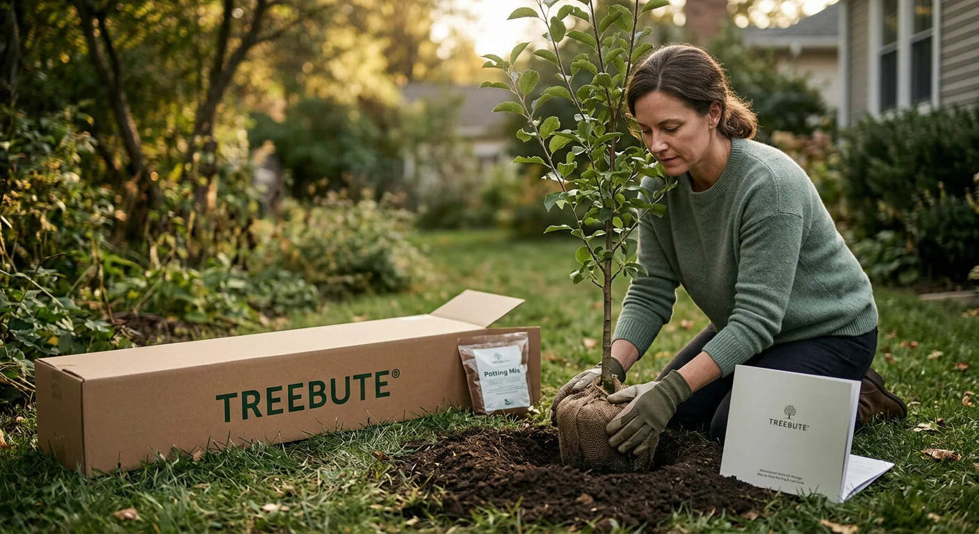 Memorial trees are a meaningful way to honor loved ones with their strength, beauty, and quiet presence. Now imagine giving symbolic life back to your loved one by safely planting their cremation ashes with a tree. Treebute is the first service of its kind creating tangible, living memorials in private residential yards since 2020. Sustainably returning cremation ashes to the earth to nourish new life brings healing to family and friends. Especially when seen regularly in a lawn or yard – a daily moment of remembering them with nature. Each Treebute tree represents a life, given with great love and professionally planted with reverence, and provide benefits for generations.